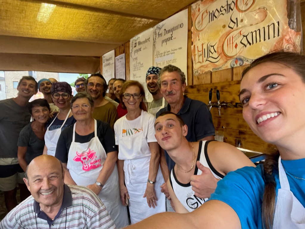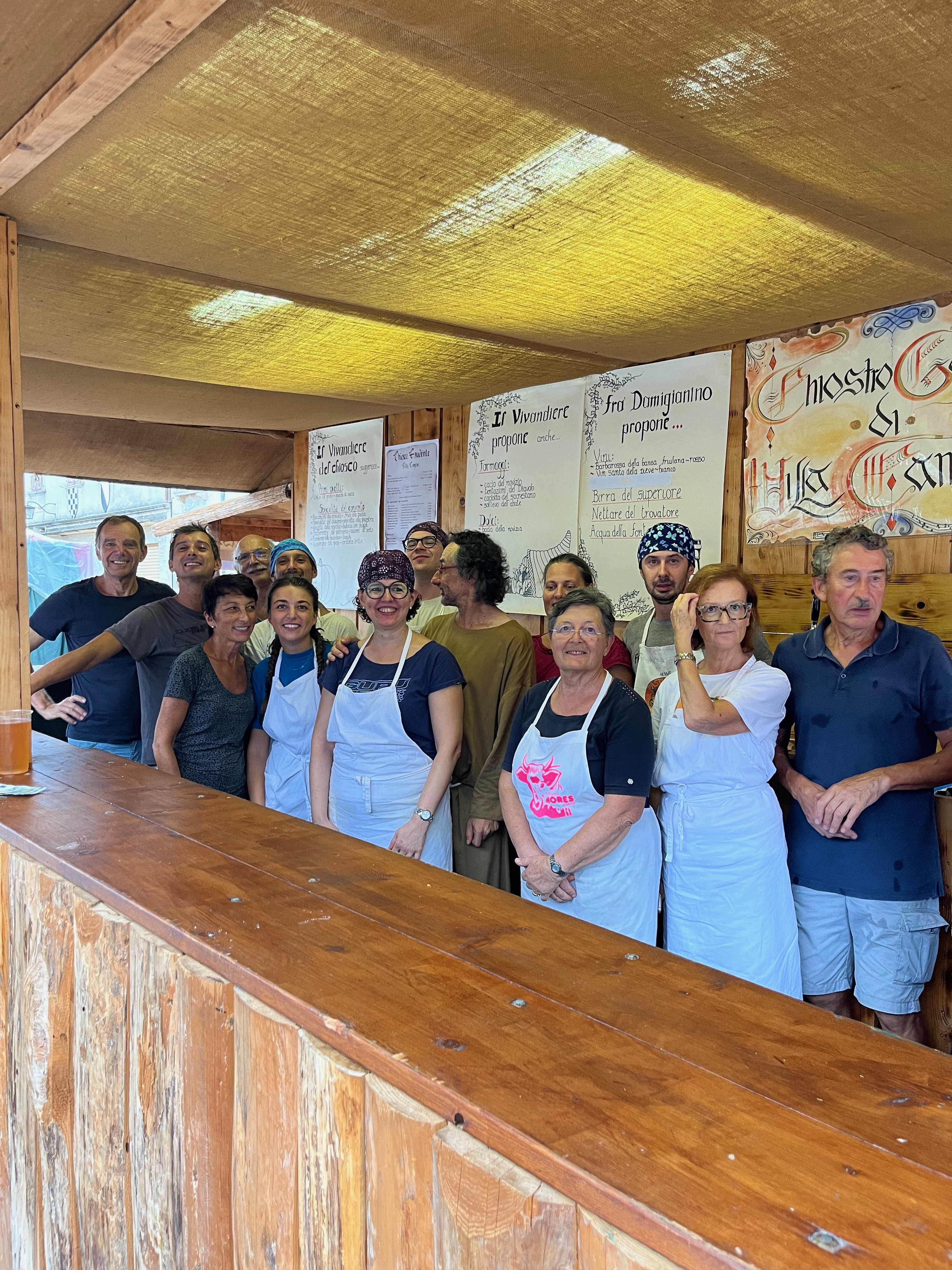 Il 5, 6, 7 e 8 settembre si è svolta la XXXII Edizione di Medioevo a Valvasone, una delle manifestazioni più amate e partecipate nell’estate friulana,. Ormai da 25 anni gestiamo, in quella speciale occasione, la «Taverna gaudente» in piazza castello. Lavoro e divertimento si coniugano in una iniziativa che accoglie di anno in anno nuovi e appassionati visitatori. Le nostre specialità culinarie sono le ormai leggendarie: come le «Coradelis” (non sapete cosa sono? venite ad assaggiarle a Valvasone il prossima anno, le trovate solo lì 😉), o il delizioso «Frico di Zucca», i classici gnocchi di zucca, e che dire delle ambitissime «Palle dei frati», ovvero le nostre polpettine di ceci… Arrivederci dunque alla prossima esizione!
